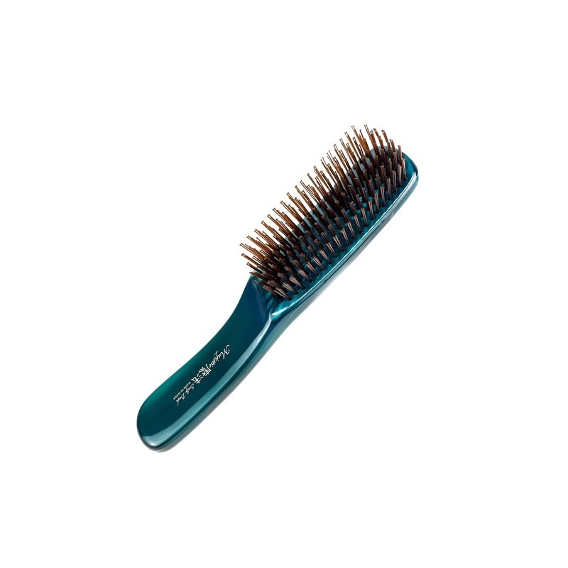 Расческа Majestic Green для густых жестких волос. 568 зубчиков с литыми наконечниками тщательно очищают более сорока тысяч пор от скопившихся загрязнений, а эффект легкого пилинга обеспечивает устранение старых клеток - кожа начинает дышать. Массаж усиливает приток крови к корням волос - это благоприятно воздействует на волосяные фолликулы, в том числе спящие - к ним поступает больше микро- и макроэлементов. Волосы начинают расти быстрее, а при регулярном применении становятся гуще, сильнее, наполняются естественным блеском.